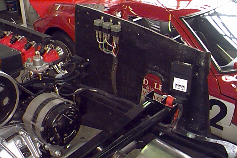 management computer, relays, wiring loom, and coils (black blob at bottom left
