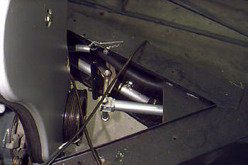Detail of left rear corner showing the shift linkage