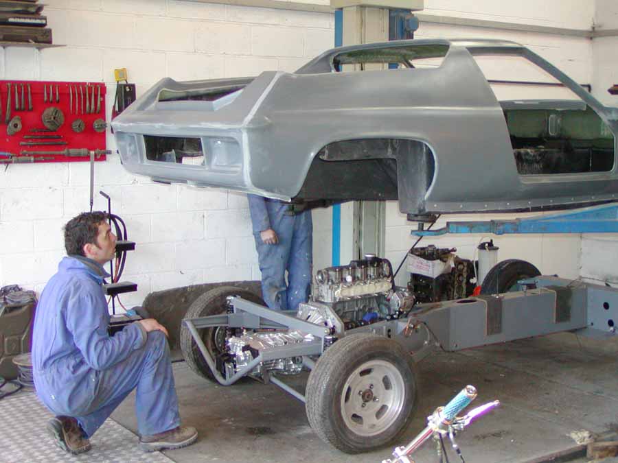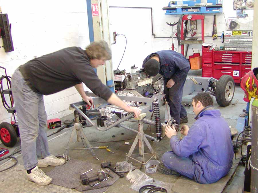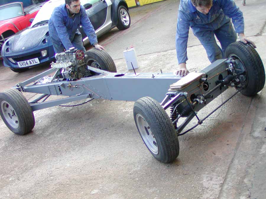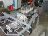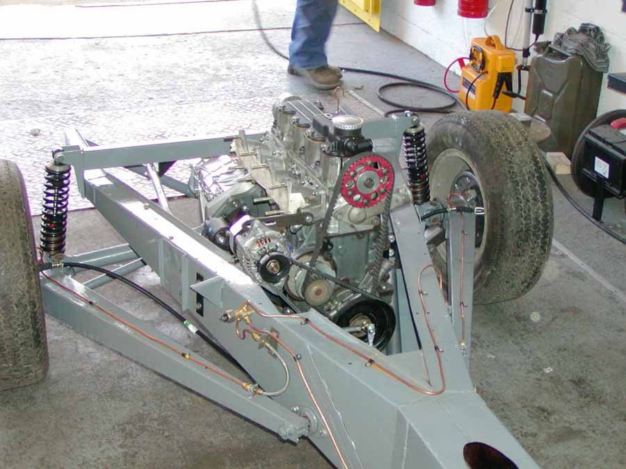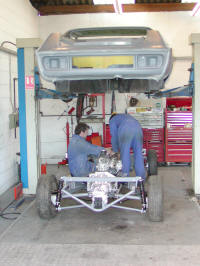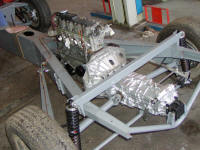 engine/gearbox has been fitted, drive shafts installed, gear linkages modified,